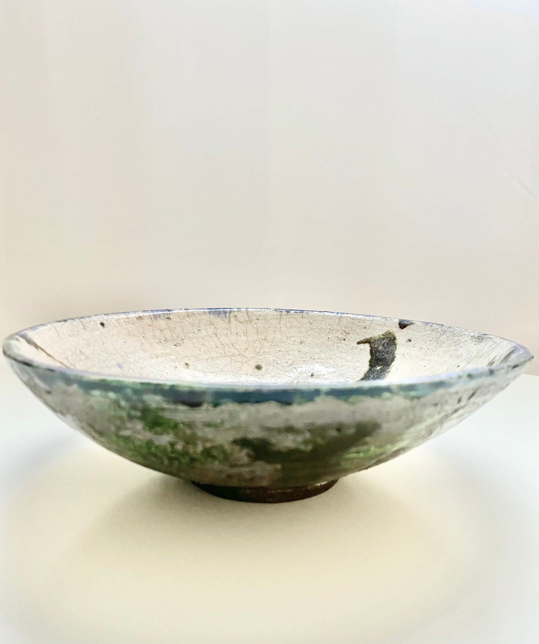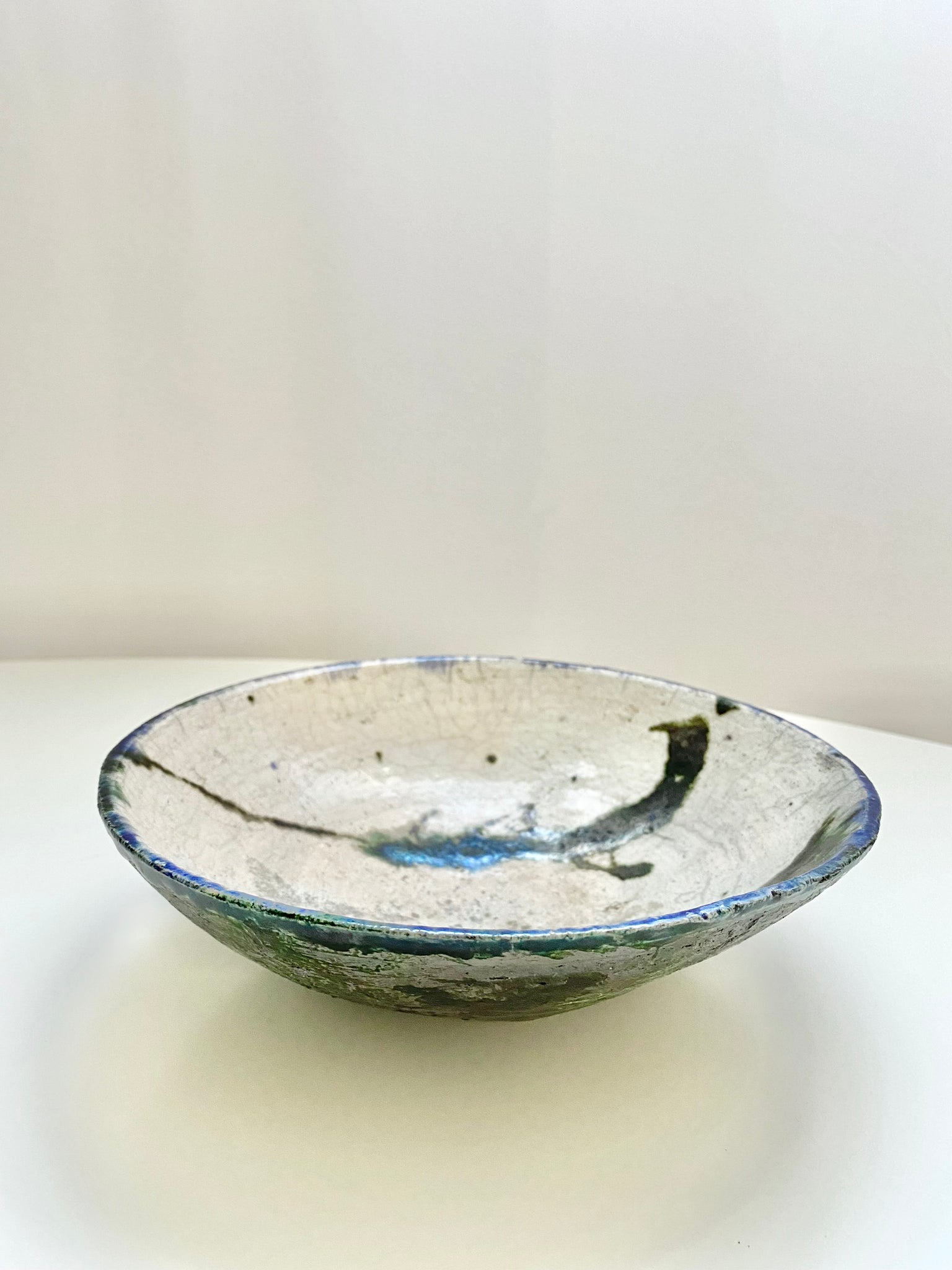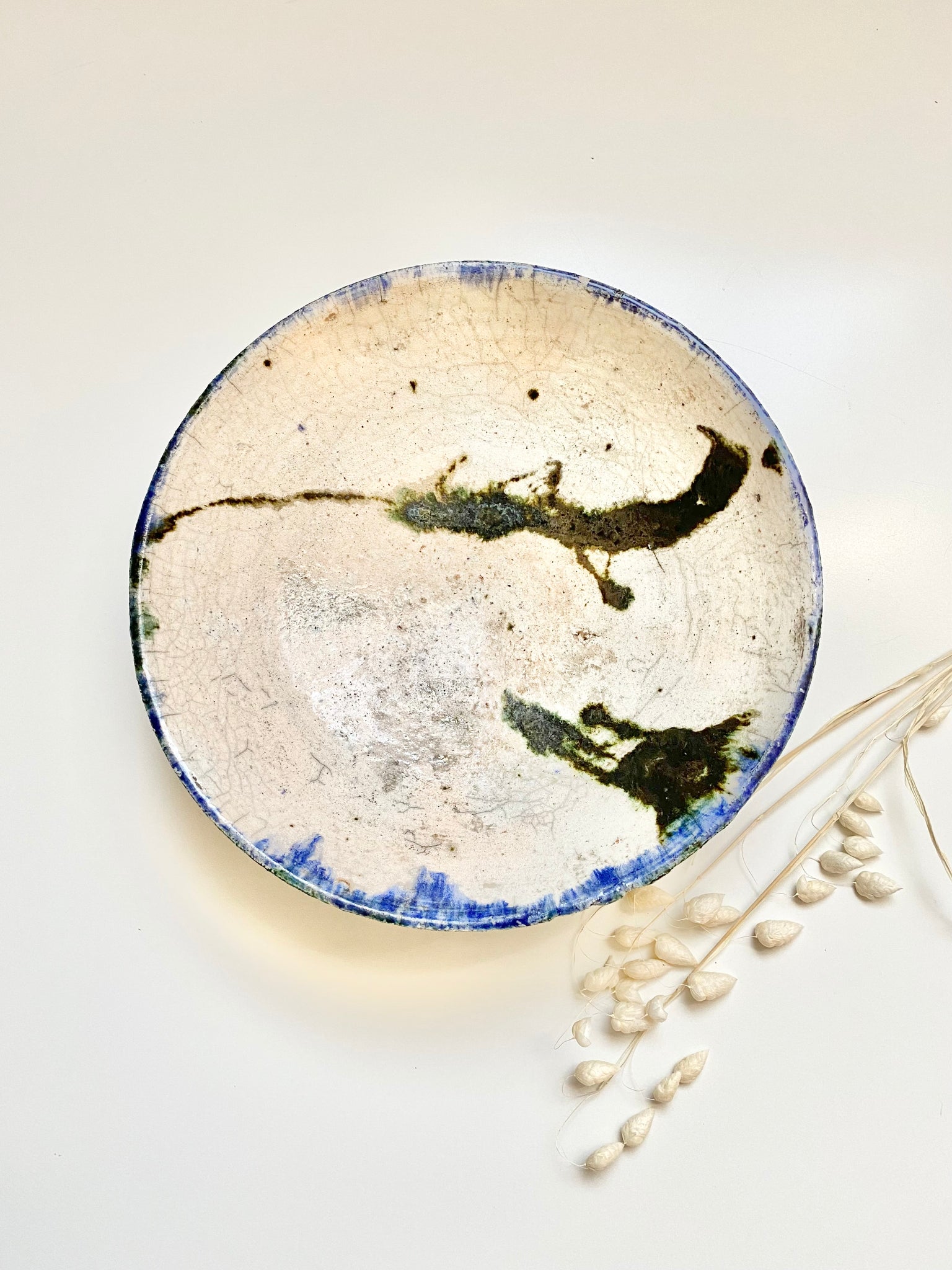 Handmade vintage raku pottery. This piece would add character and charm to a coffee table setting or use as a place to rest your jewelry.