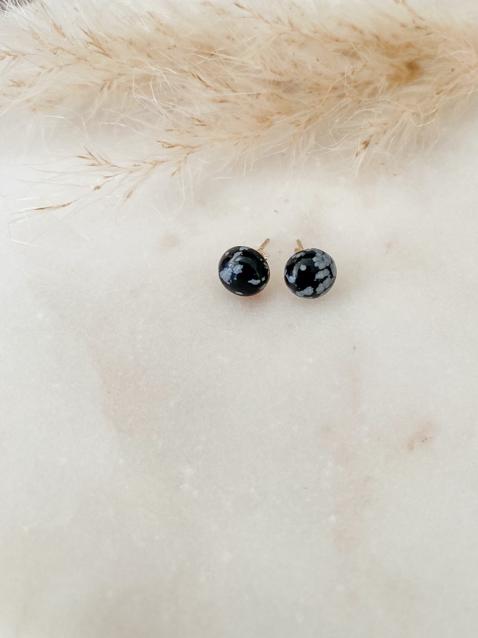 • Load image into Gallery viewer, Snowflake obsidian studs