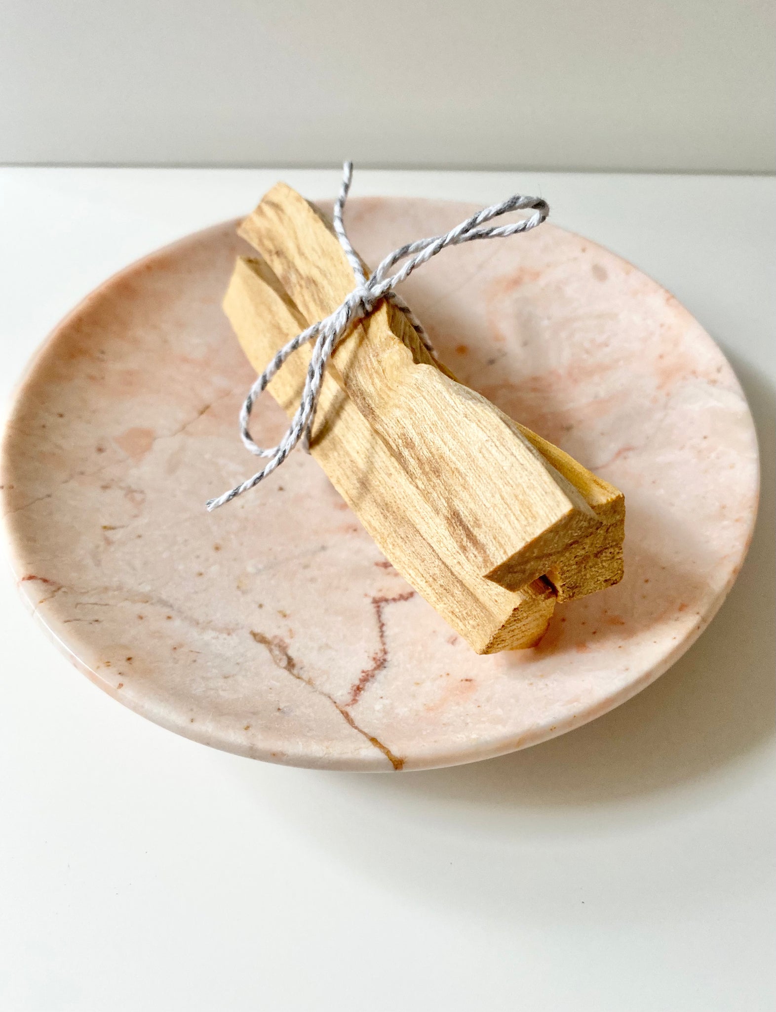 A beautiful natural stone plate made of Marble in the prettiest pink shade. The perfect accent piece to display your jewelry or a candle or use as a smudging bowl.
