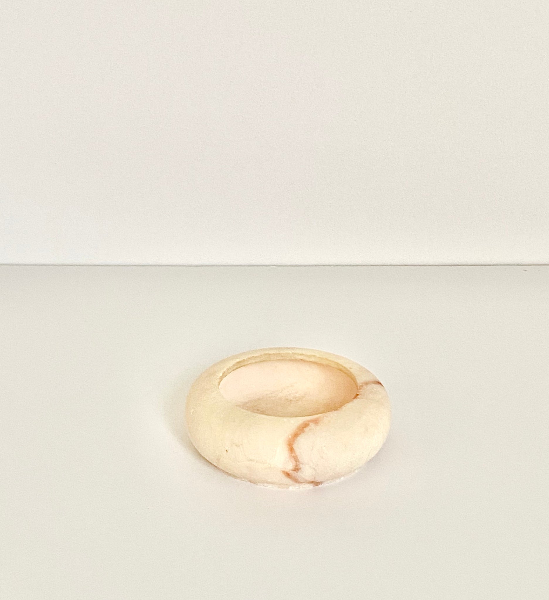 A beautiful natural stone bowl made of Alabaster in the softest pink shade. The perfect accent piece to display your jewelry or use as a smudging bowl.